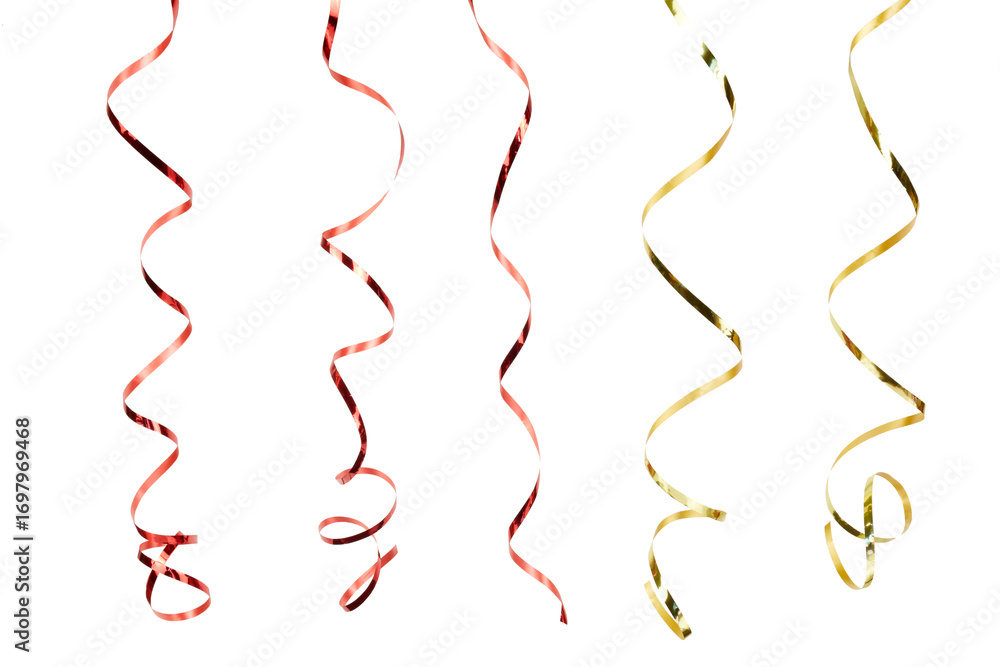 red and gold glossy hanging gift ribbon band collection isolated on white or transparent png