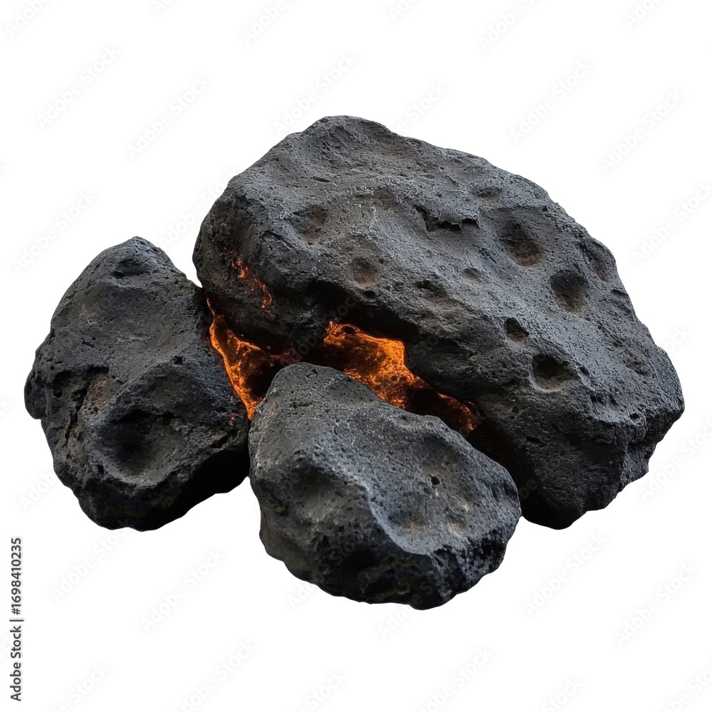 Black volcanic stone isolated on transparent background.