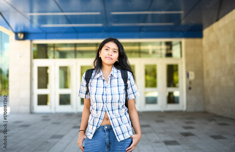 Happy teen high school student outside on summer season
