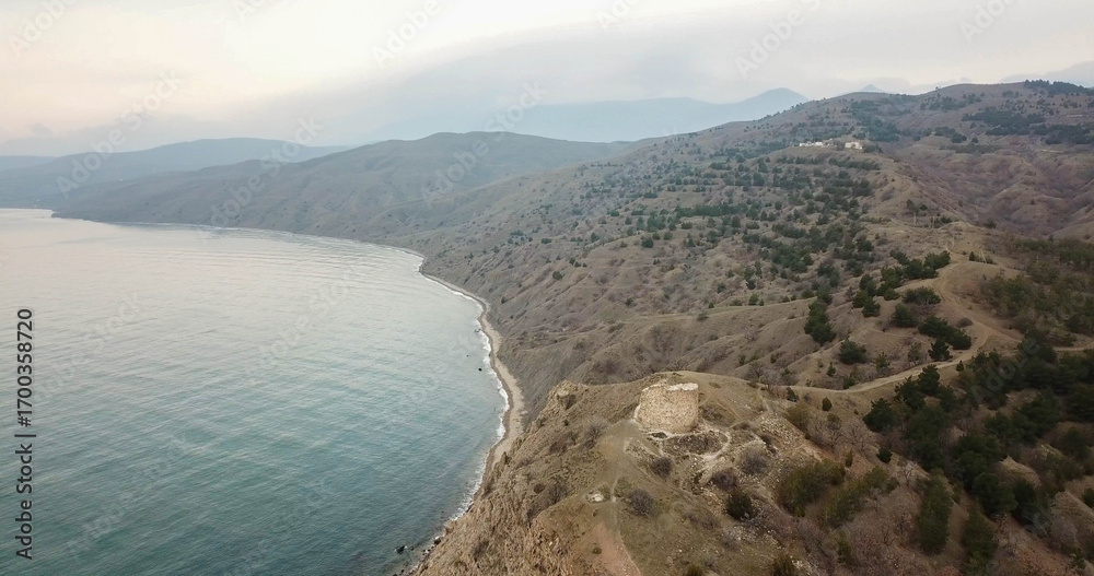 Ancient tower on a mountain near the sea