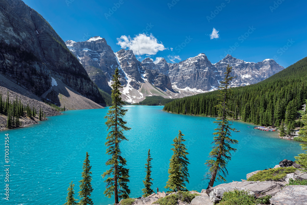 Moraine lake with in the valley of ten peaks, Canada.