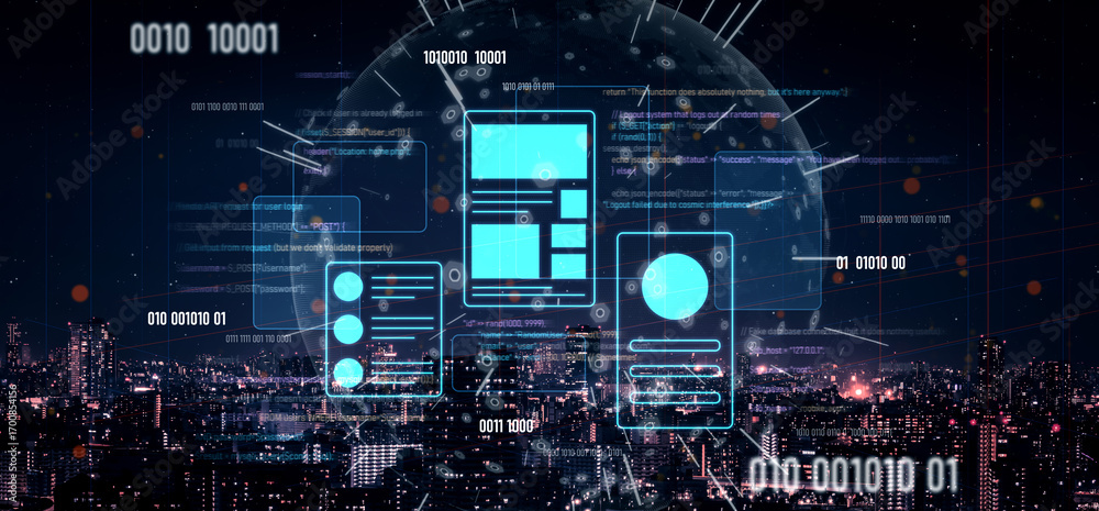 UI UX mockup showing application layout, structure, and code interface. UI design defines user flow, UI design improves clarity, UI design enhances experience, and UX design supports logic. Vouch