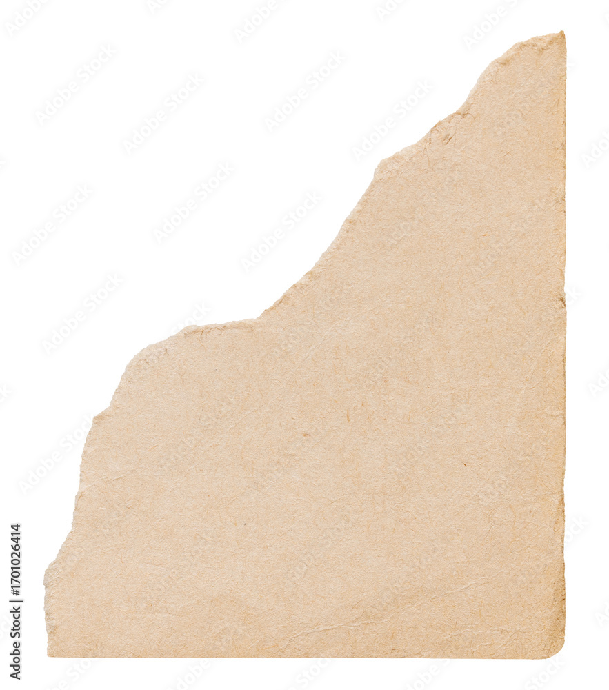 Ripped corner from old vintage book sheet, faded paper scrap with copy space isolated for design