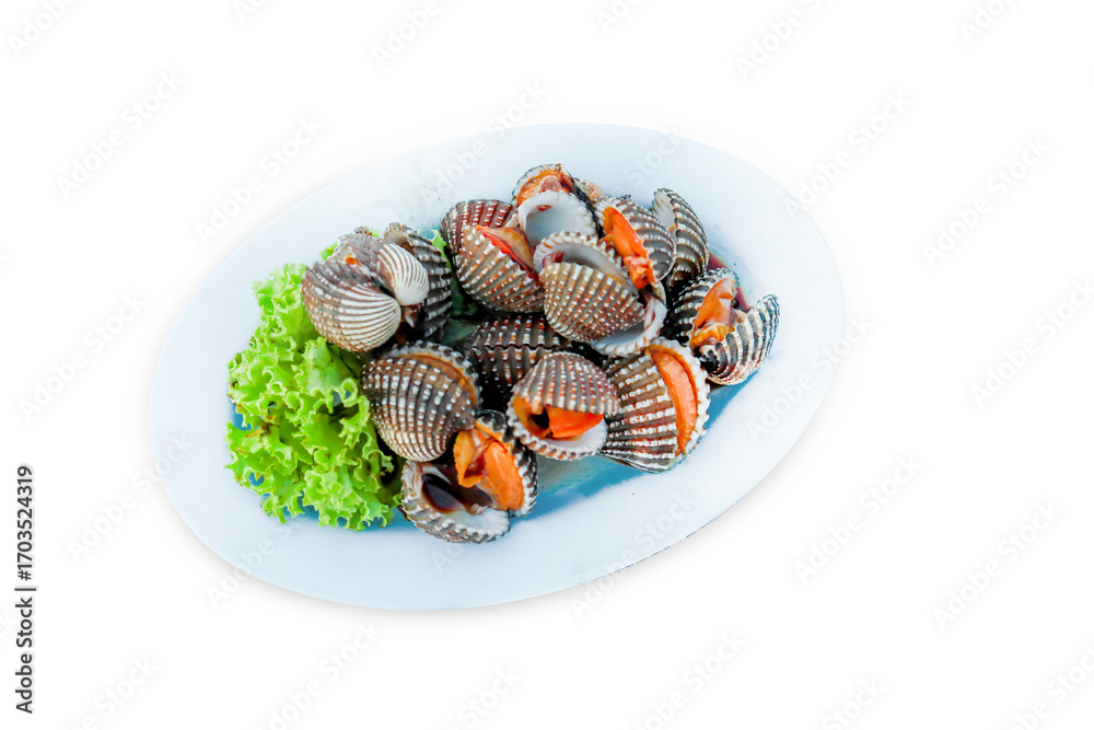 Top view of Boiled cockles, focus selective