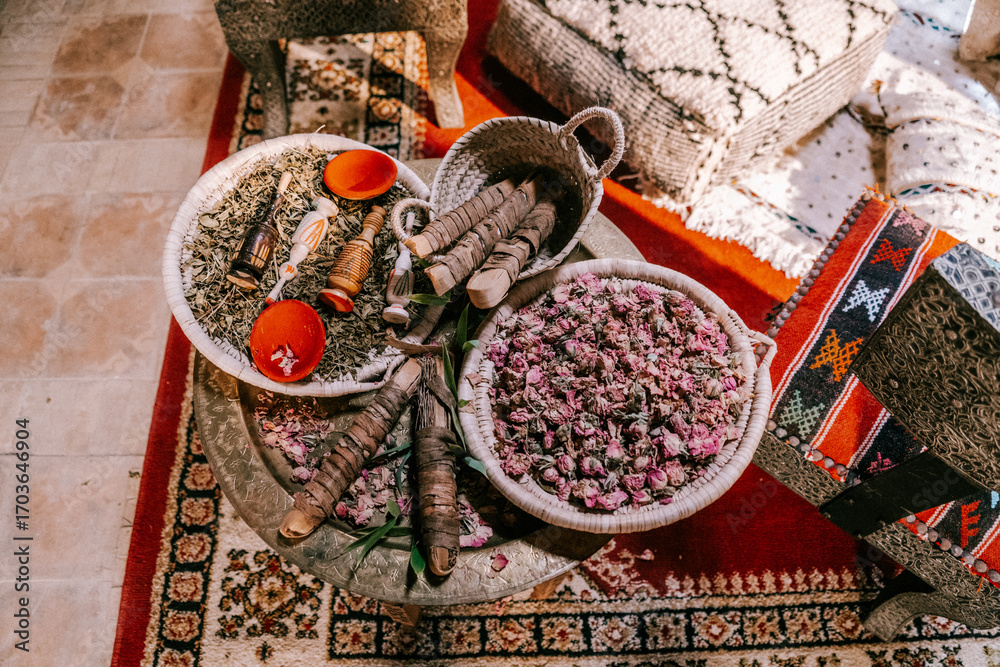 Folgende Fotos können Ihr Interesse wecken: marokko, henna, zeremonie, marrakesch, tradition, körbe, kraut