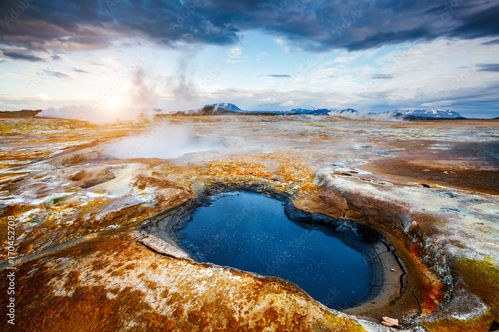Ominous view geothermal area Hverir (Hverarond). Location place Lake Myvatn, Krafla, Iceland, Europe.