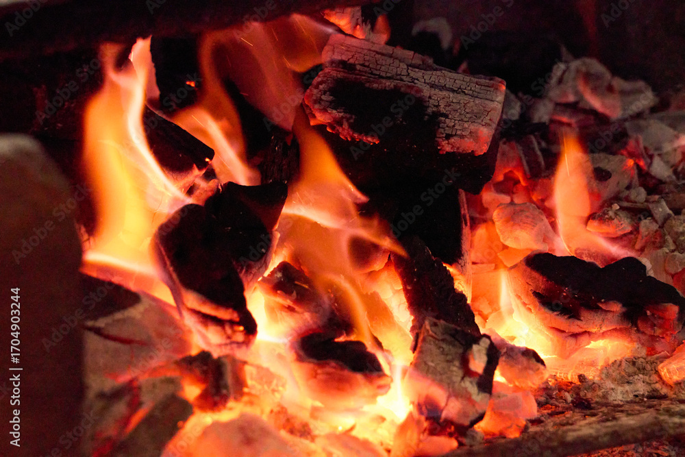 The fire is burning brightly, and the wood is glowing red. The flames are dancing and crackling, creating a warm and inviting atmosphere. Mexico, mexico city
