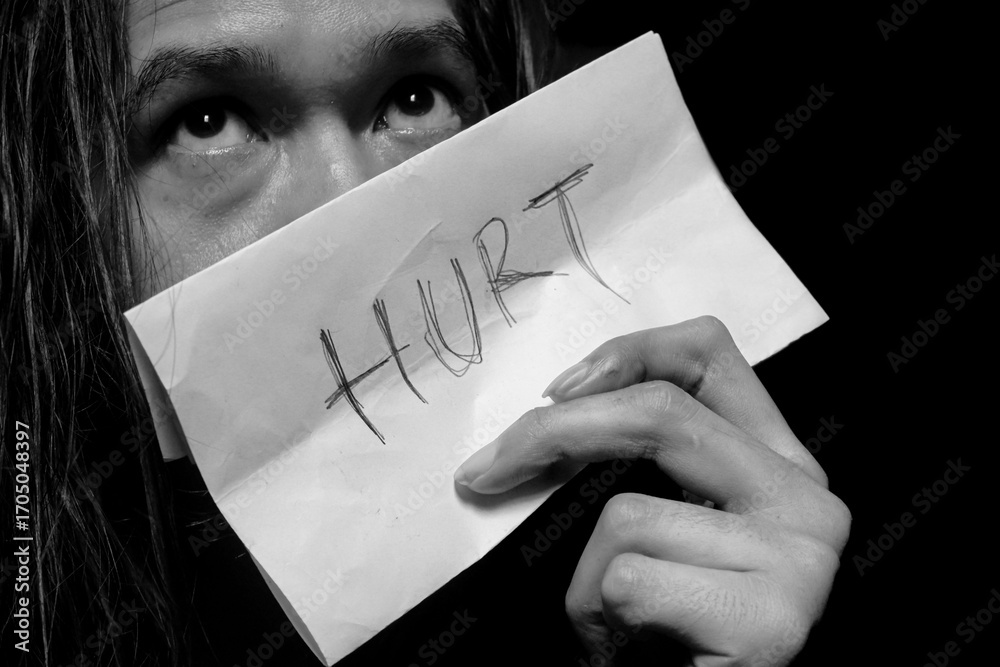 Hurt Written on Paper Held in Hand – Expression of Sadness and Depression