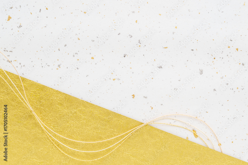 金箔銀箔の白い和紙と金のもみ和紙に水引の背景