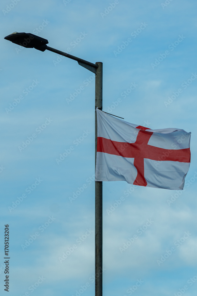 15 09 25 York. English Flag Flying on Pole Against Clear Blue Sky