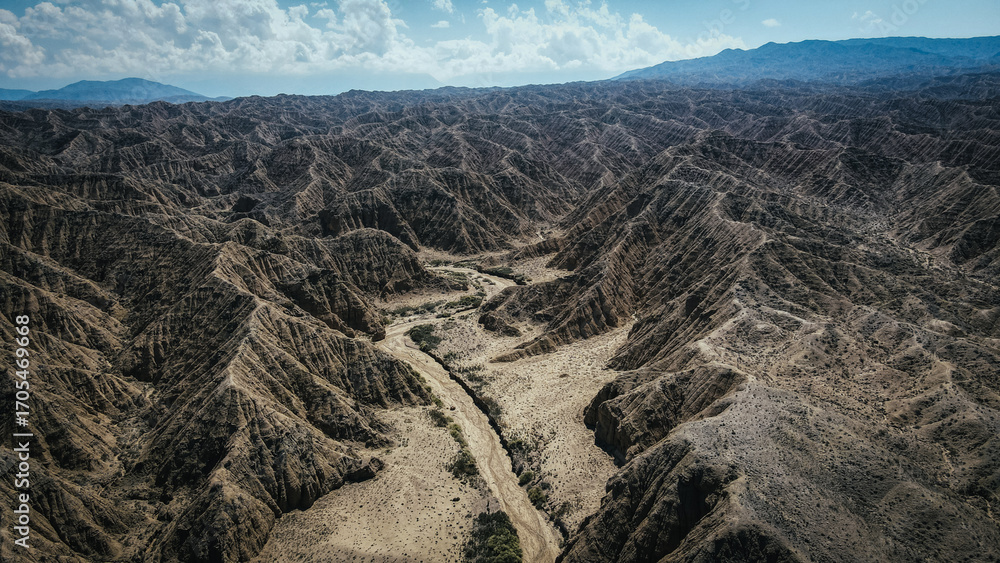 The aerial view of the Ak Say Canyon in Kyrgyzstan