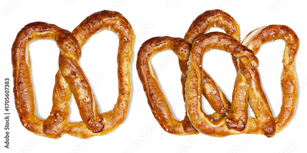 Salty baked brown pretzel isolated over a white background. Oktoberfest festival