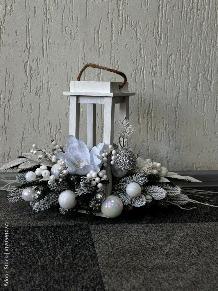 white christmas lantern with flower