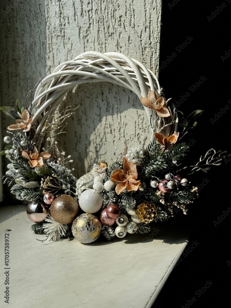 festive christmas wreath with pink ornaments