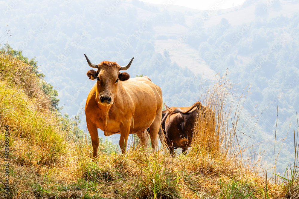 Cows in the Leitariegos Valley in Asturias, with the air polluted by smoke from the August 2025 forest fires.