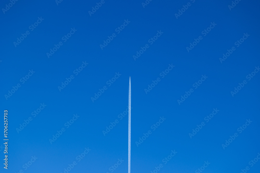 scia bianca di un aereo di linea alto nel cielo sereno e di un azzurro intenso, di giorno