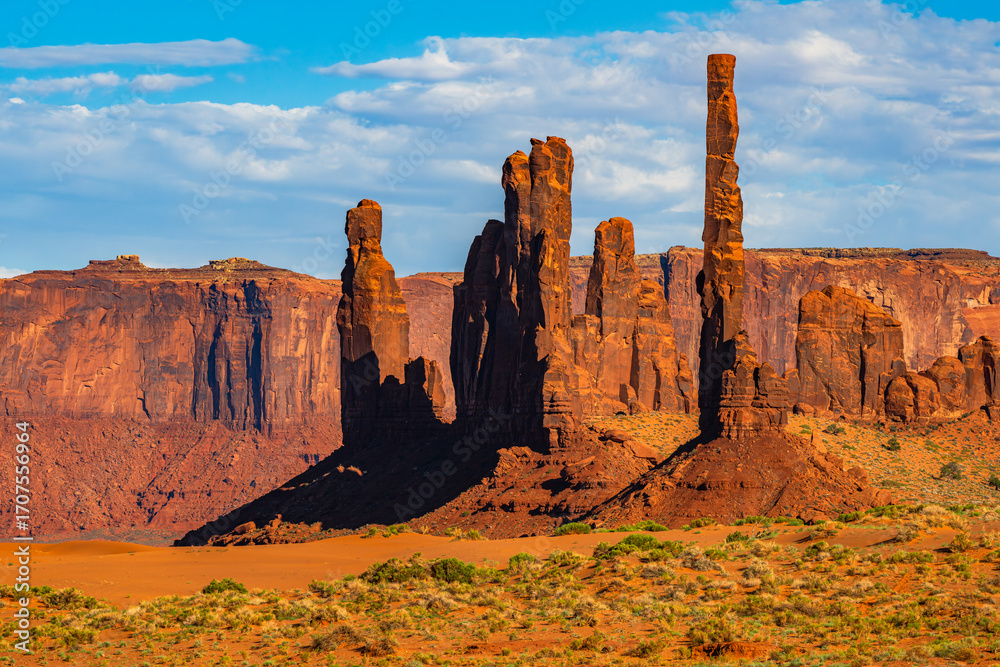 The redrock desert and spires of scenic drive in Monument Valley Navajo Tribal park in Arizona United States of America.