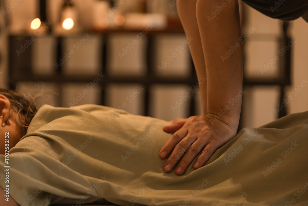 Woman lying on a bed getting a massage