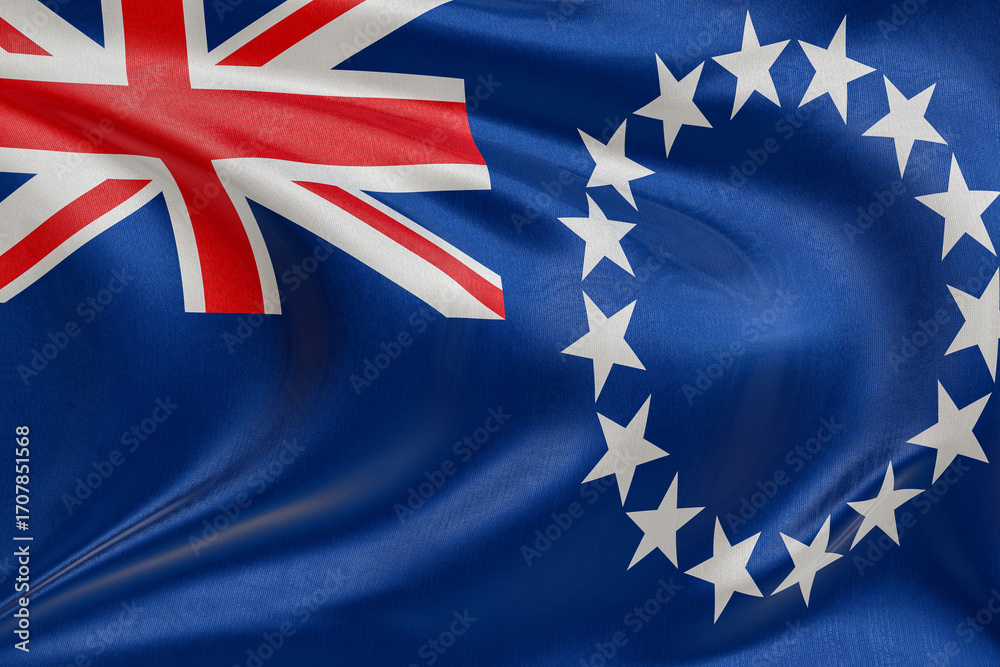 Dynamic rippling fabric of the Cook Islands flag, representing unity, heritage, and the essence of independence.