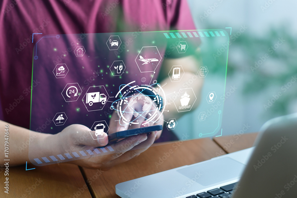 Green logistic or Sustainable transport. Sustainable global transport. with clean energy and eco friendly process to Net zero carbon emission