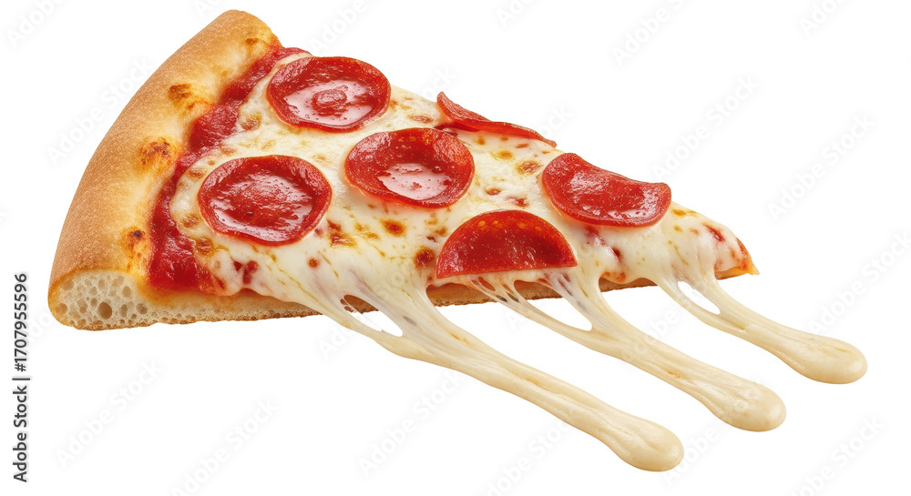 Isolated slice of pepperoni pizza with melted cheese, freshly baked and delicious
