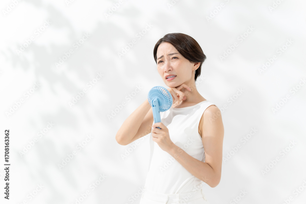 ハンディファンで涼む女性