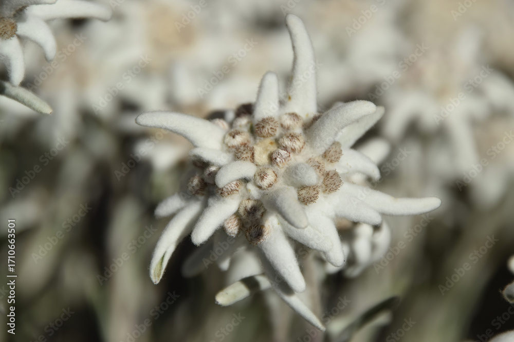 Edelweiss, a rare and beautiful alpine flower, close-up