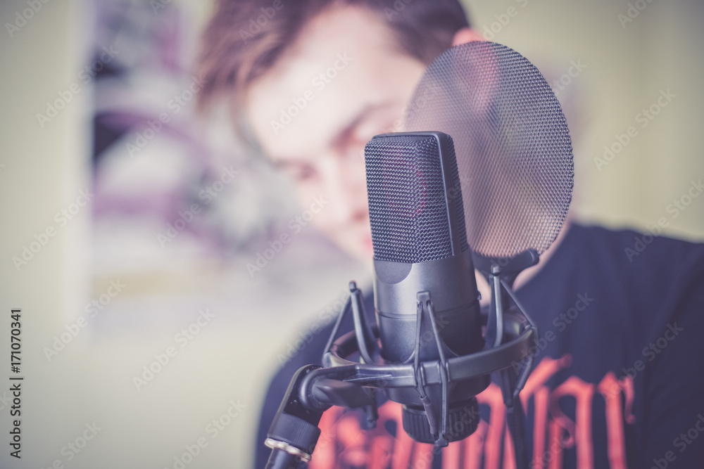 Mikrofon und Sänger im Aufnahmestudio