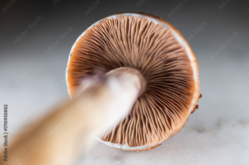 Psilocybe Cubensis mushroom gills Golden Teacher cultivation and mycology research of psilocybin fungi