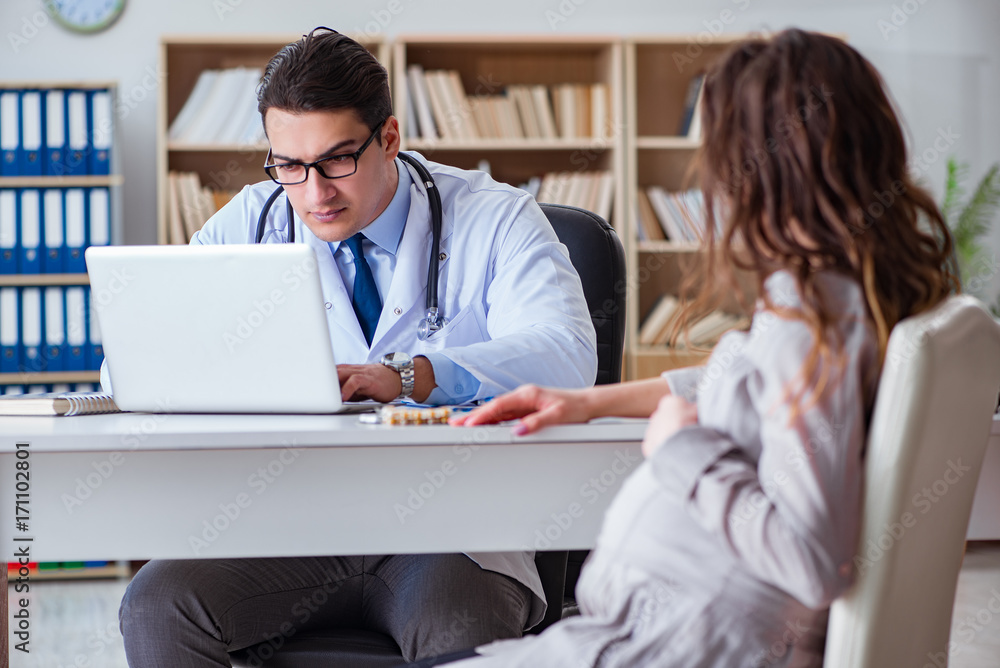 Pregnant woman visiting doctor for consultation