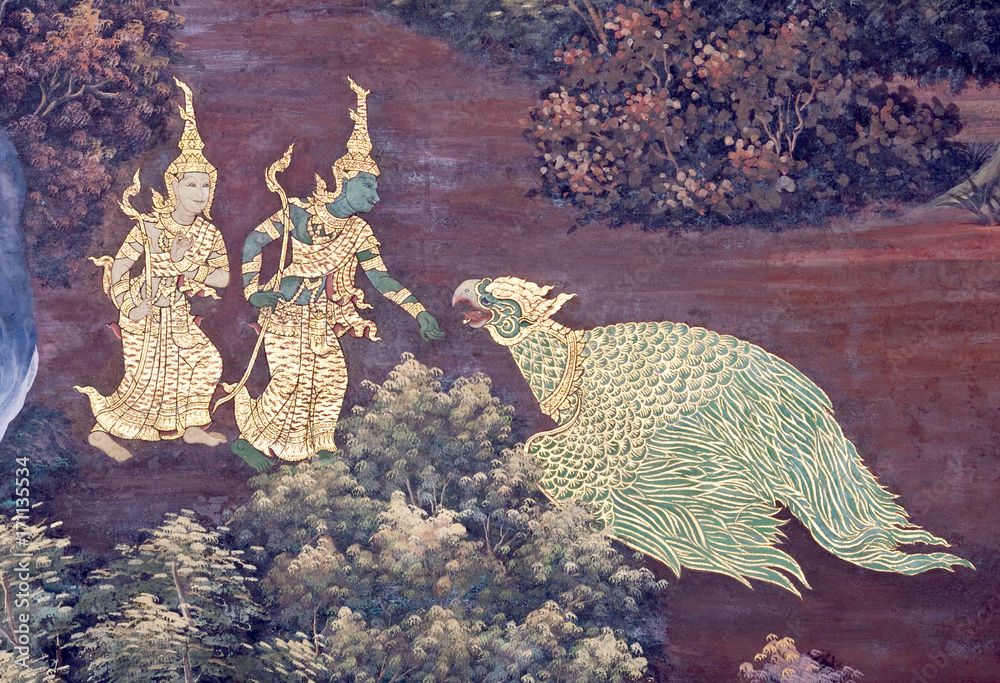 Ancient mural painting in Wat Phra Kaew Temple in Bangkok, Thailand