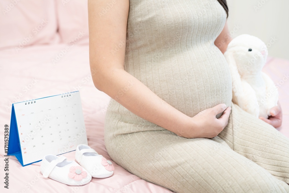 pregnant woman touches belly, Concepts of pregnancy and family. Place for text. Place for your advertisement