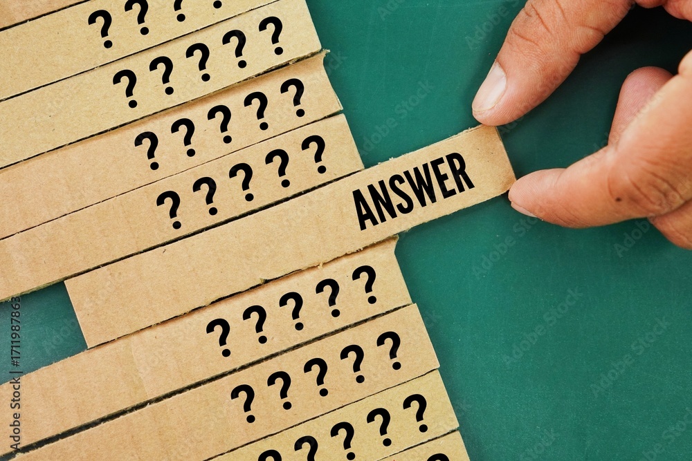 Paper with question mark icon and selected answer. concept of solving a problem or finding a solution. symbolizing finding answers, clarity, or resolution among uncertainty.
