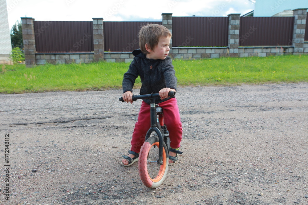 little boy on a balance bike
