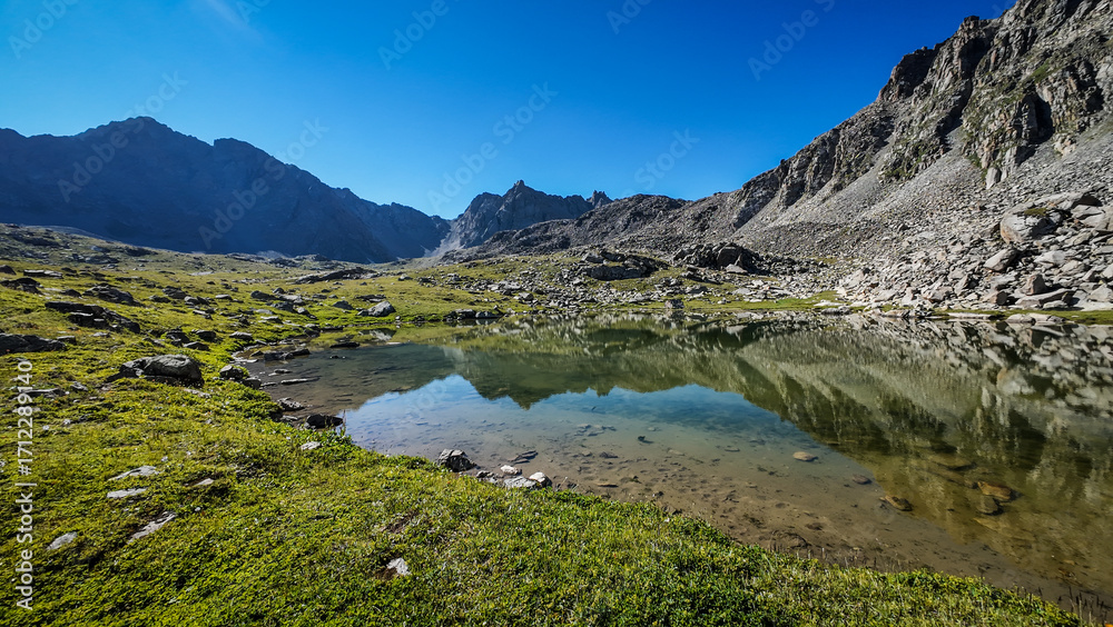The view of the Boz Uchok Lakes in Kyrgyzstan