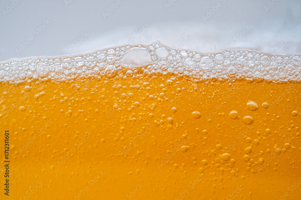 Close up bright orange Oil or beer splash texture and nature waves, Beautiful waves curve and little bubbles smooth for graphic design and background, Oil Bubbles, Soft beer bubbles, Selective focus