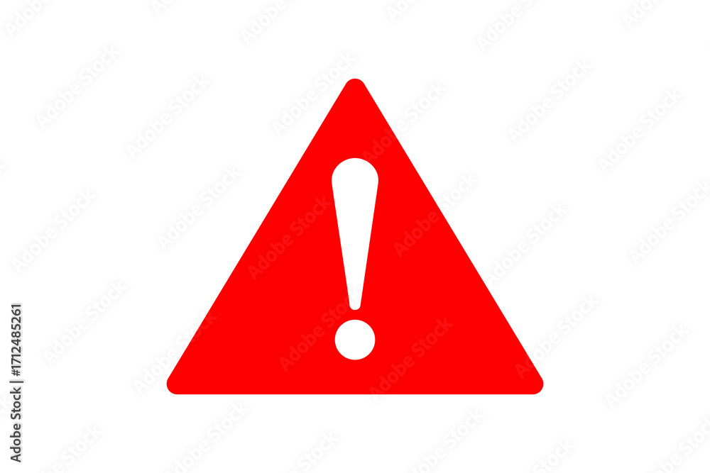 Red triangle exclamation mark symbol for alert, warning, danger, error, and caution on transparent background