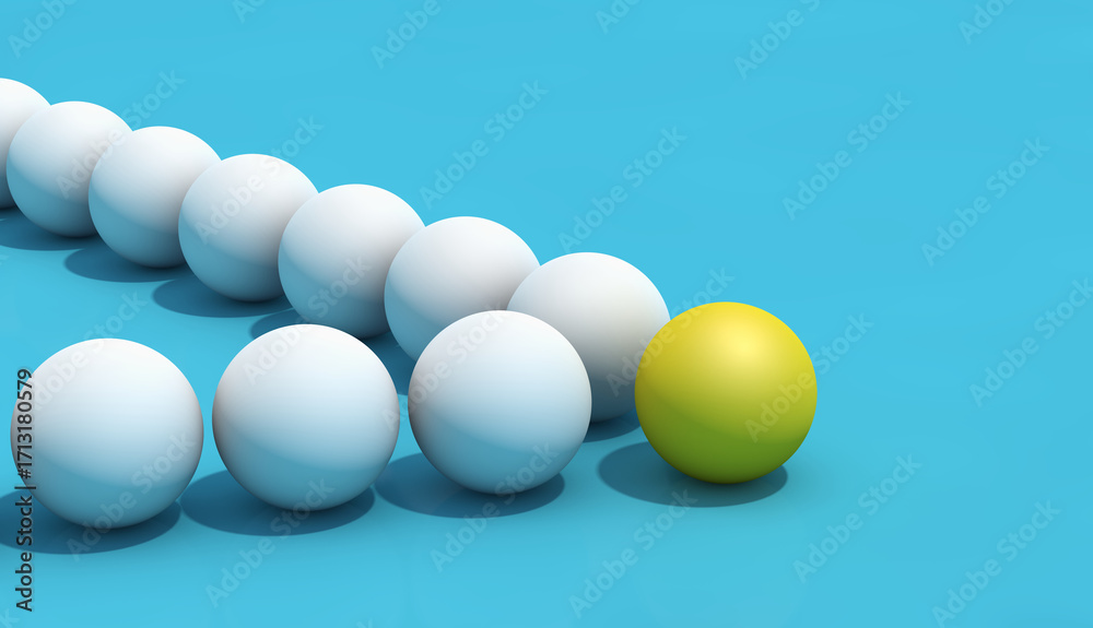 Leadership Business Abstract Concept. Yellow sphere leader is leading a group of white spheres.