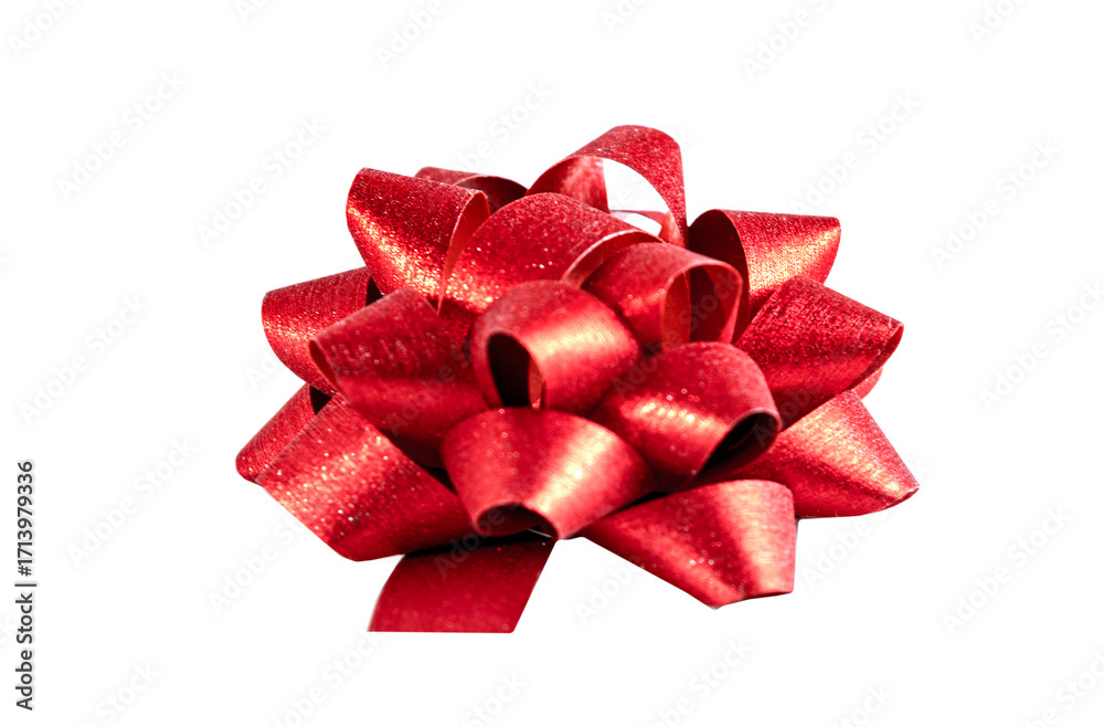 Christmas red bow top gift decor cut out, design element isolated.