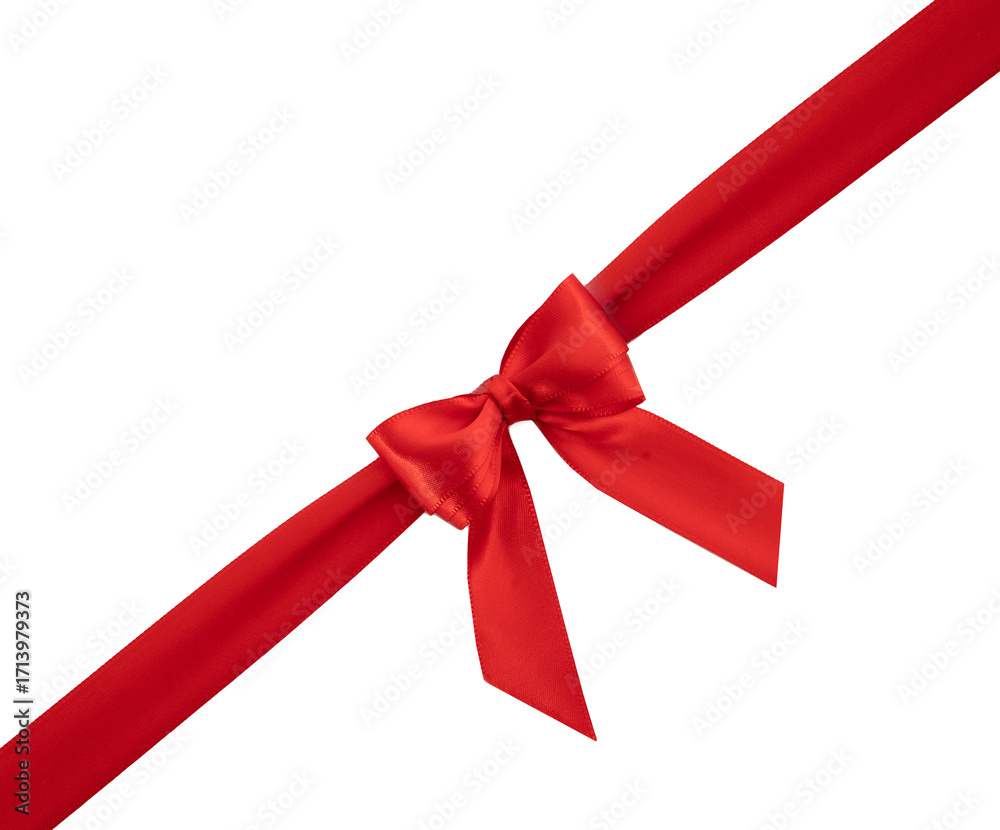Red bow and satin stripe isolated, Christmas decoration element cutout.
