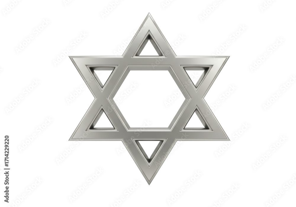 Isolated Symbol of Judaism Silver Metal Ornament Shiny Hanukkah Holiday Star David Symbolism