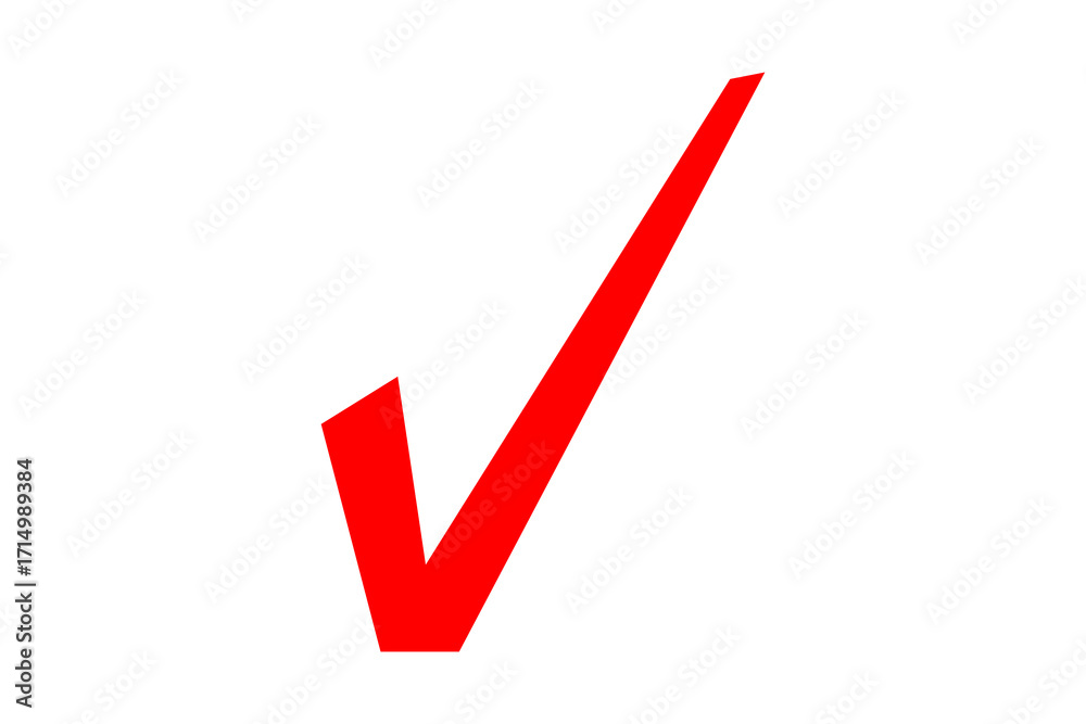 Bright red check mark symbol against a contrasting absence of color isolated on transparent background