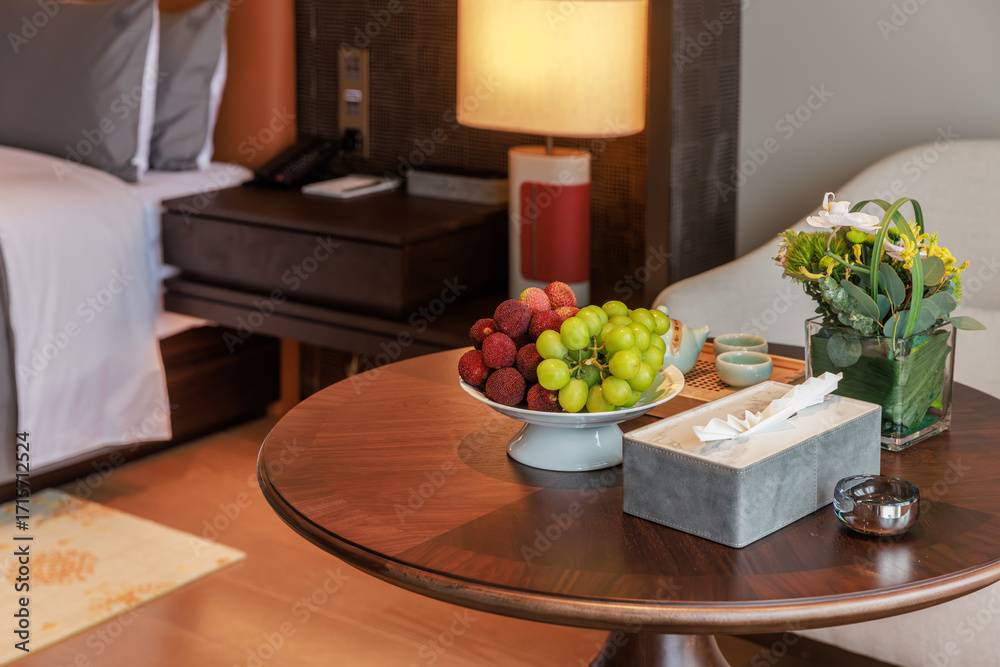 Luxury Hotel Room with Fruit Service and Floral Decoration