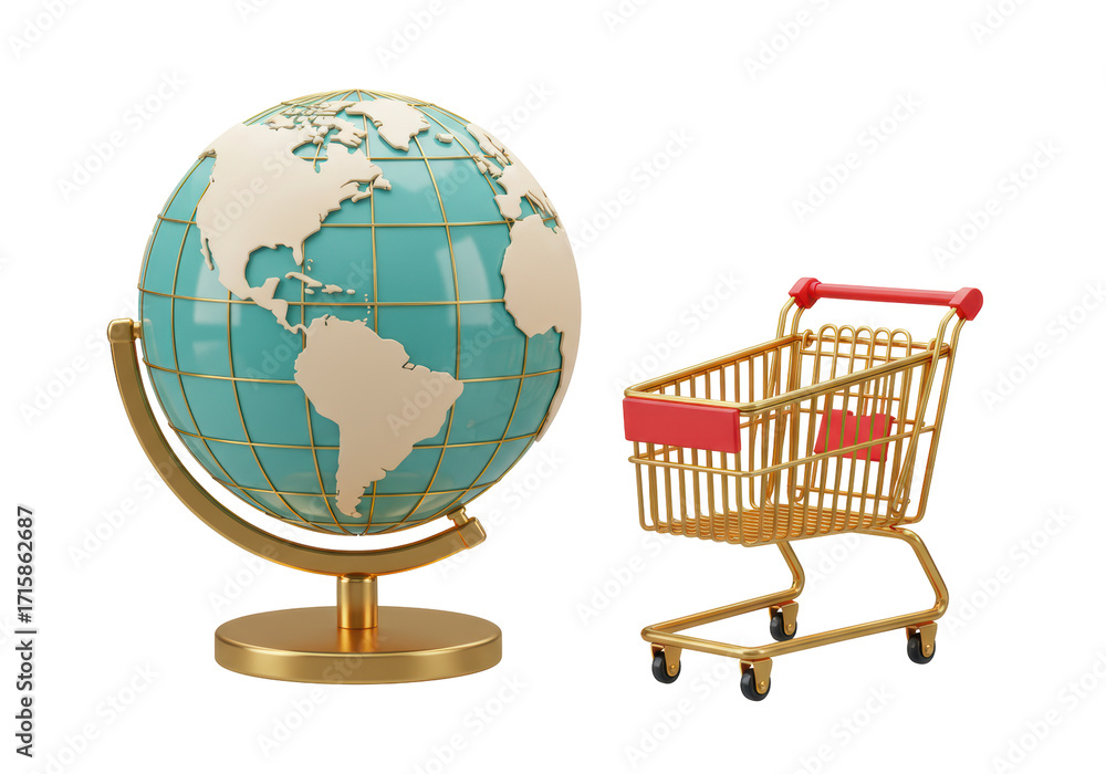 Isolated globe and miniature shopping cart showing worldwide retail shopping concept