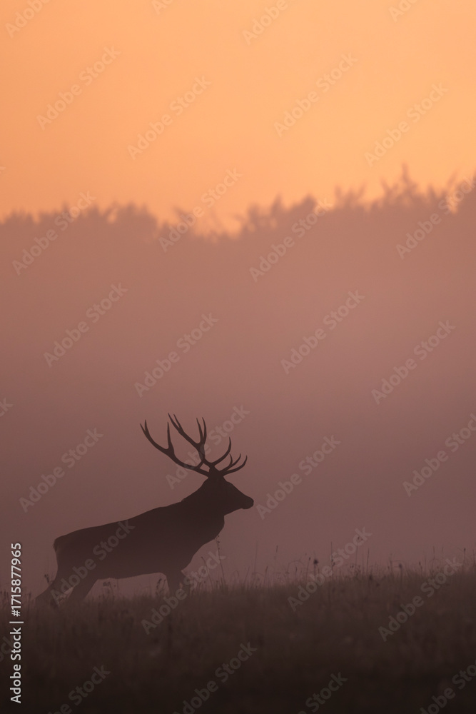 Red deer (Cervus elaphus) stag during the rutting season. Bieszczady Mountains, Poland.