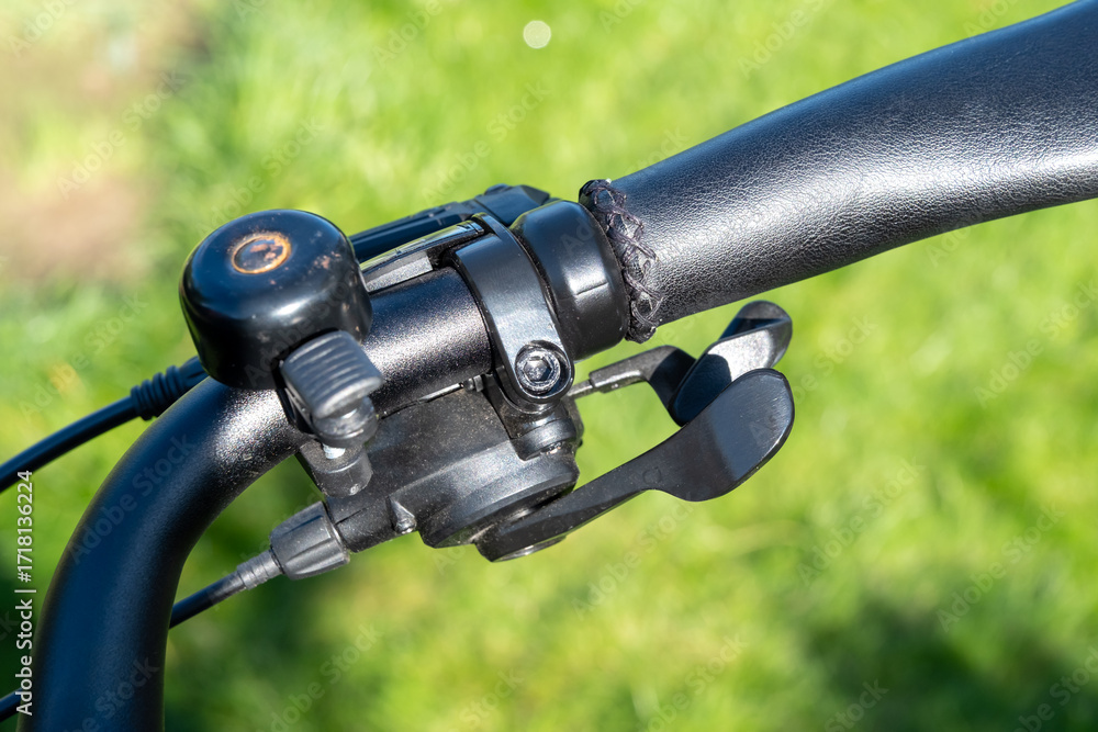 Close-up of bicycle gear shifter, detail of modern drivetrain technology and shifting system