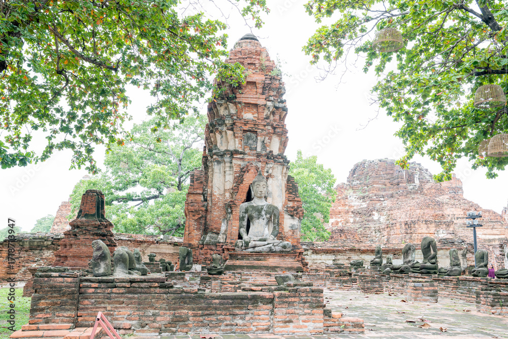 バンコク タイ 遺跡 頭部 樹木