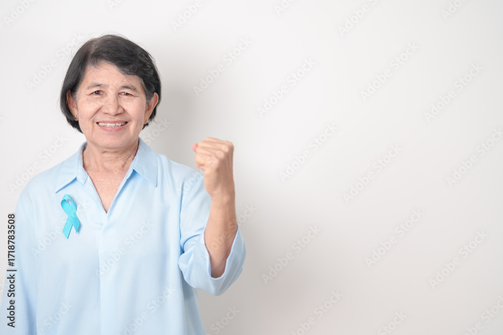 Elderly with blue Ribbon for concept of blue November, November Prostate Cancer Awareness month, World Diabetes day , Men Health month, International men, Father day. Healthcare and world cancer day