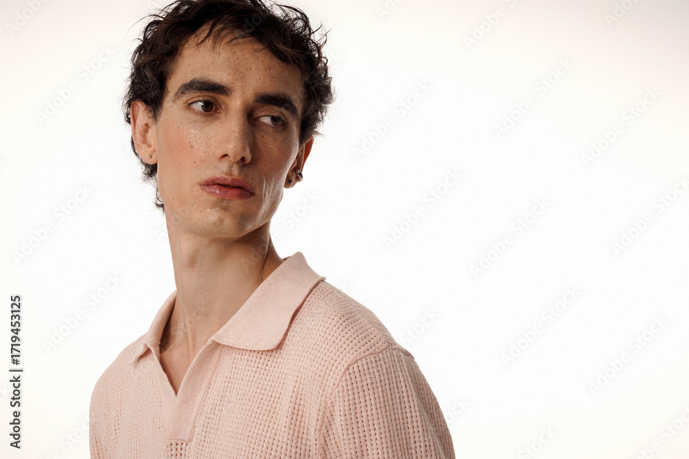 Stylish man exuding elegance and confidence in chic attire against a minimalist backdrop