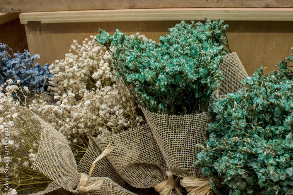 Christmas bouquets with dried flowers and herbs